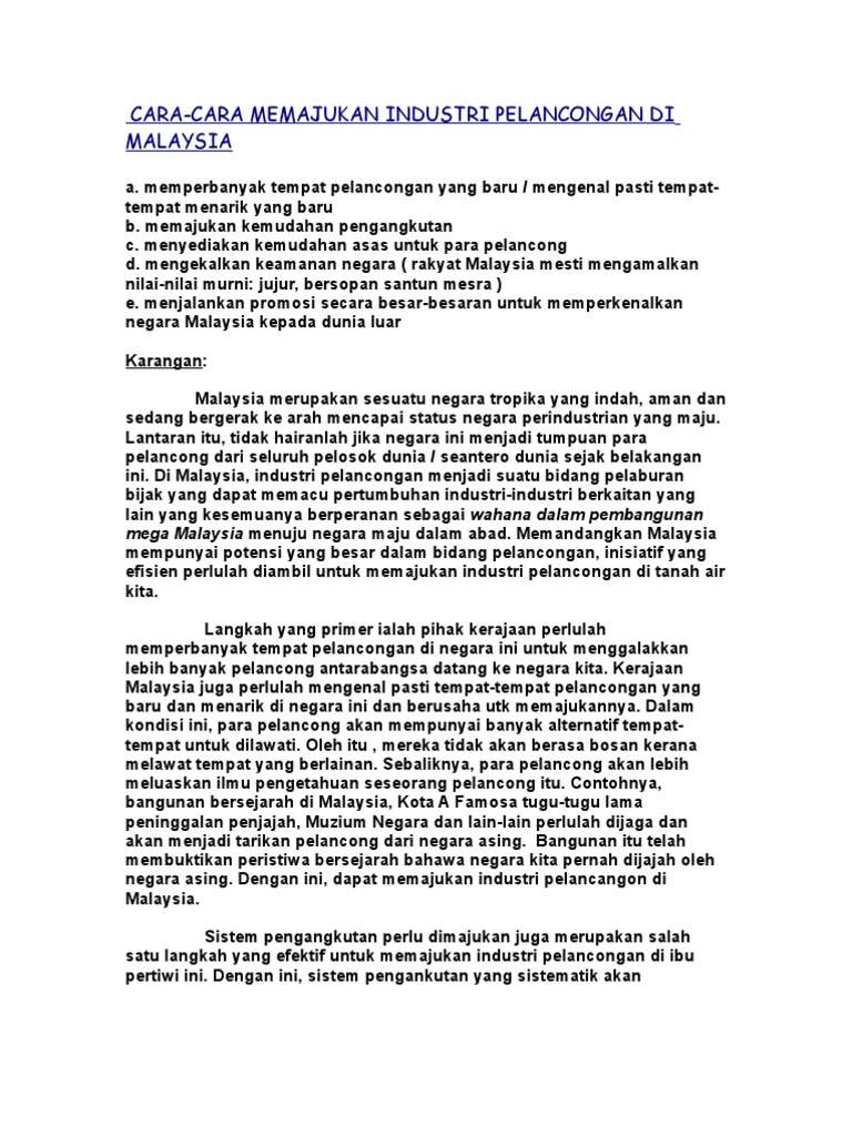 Cara Cara Memajukan Industri Pelancongan Di M Sia Pdf